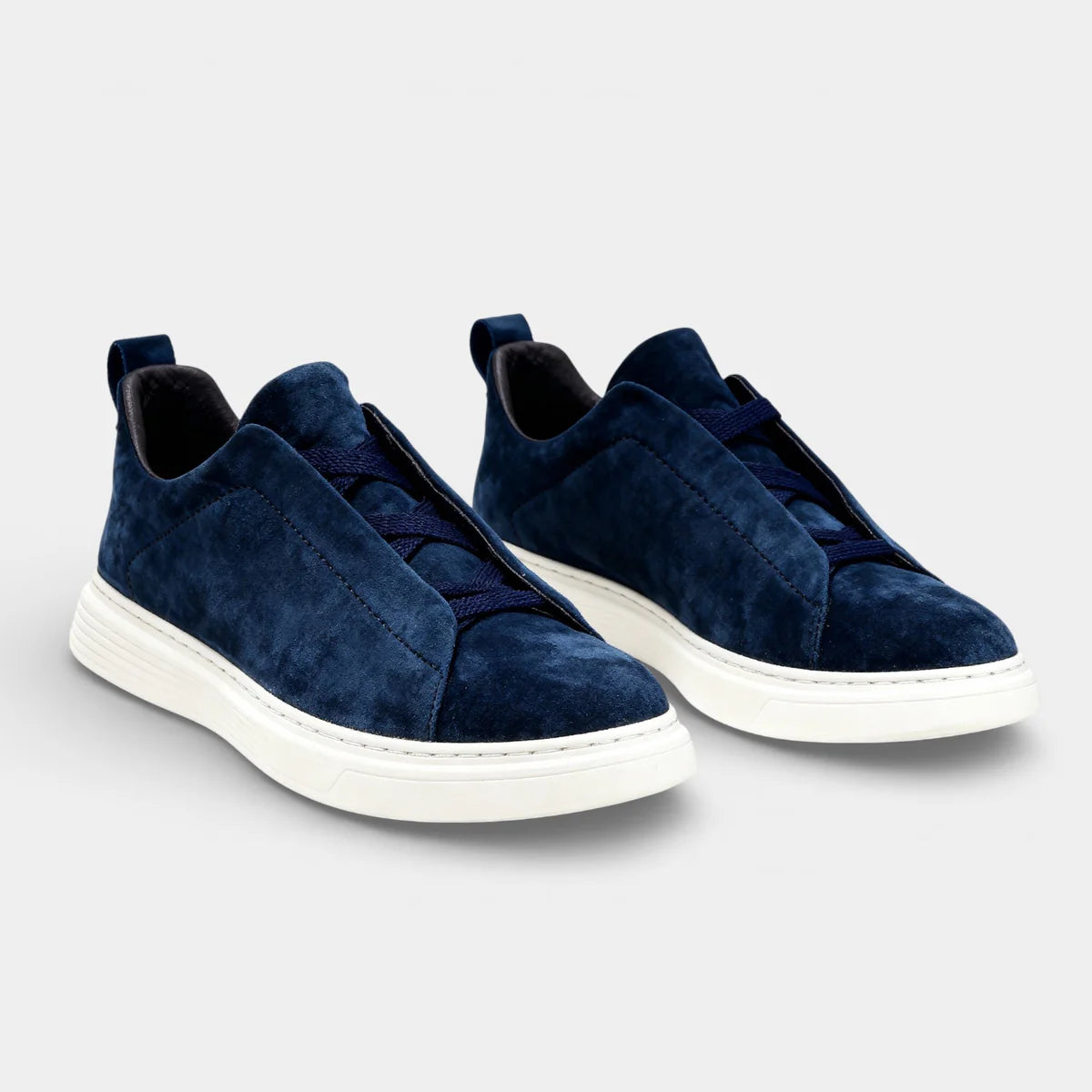 La simplicité sculptée rencontre le daim riche et le cuir souple, formant une silhouette de chaussure épurée rehaussée de détails dorés élégante, confiante et résolument moderne.